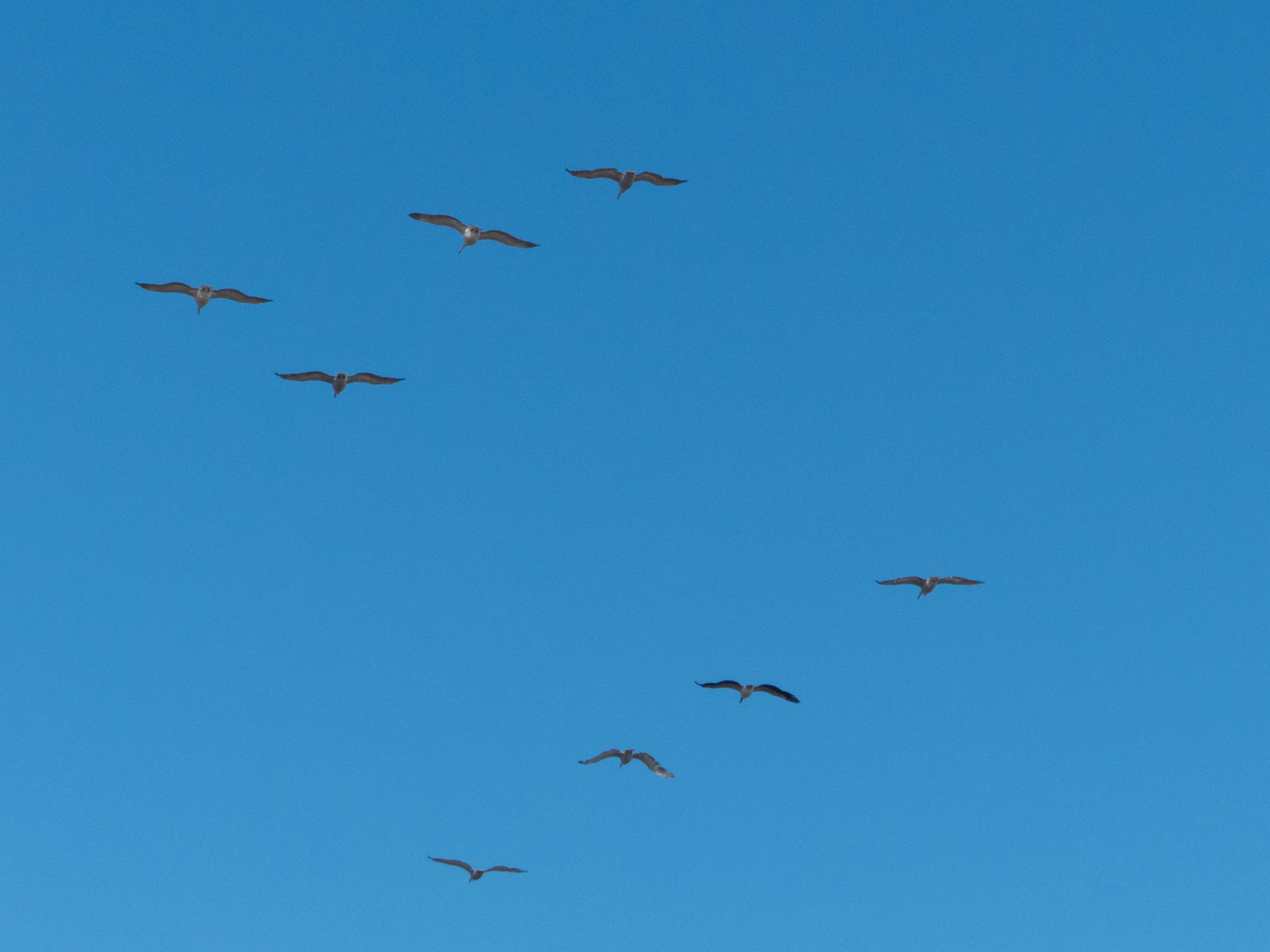 8 Αργυροπελεκάνοι (Pelecanus crispus), 1 Ροδοπελεκάνος (Pelecanus onocrotalus). Αργότερα ο Λευτέρης παρατήρησε άλλους 11 πελεκάνους πολύ μακριά (σχεδόν πάνω από τον Πολυχνίτο) να κατευθύνονται νότια.